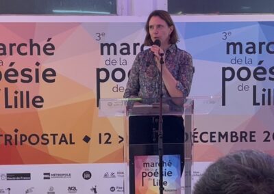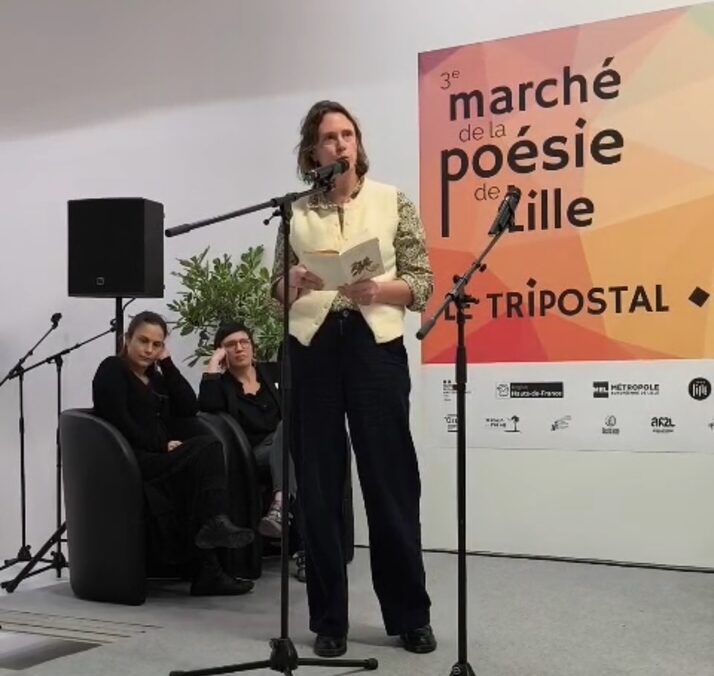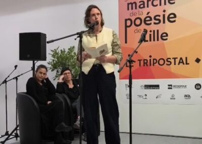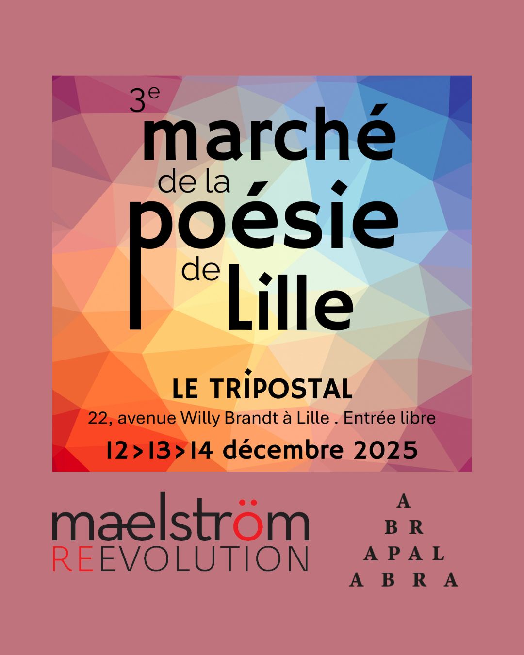 Lectures et dédicaces de Jusqu’à l’arbre sur les scènes du marché de la poésie de Lille, au Tripostal, avec les éditions Abrapalabra et les poètes et poétesses de maelstrÖm reEvolution.